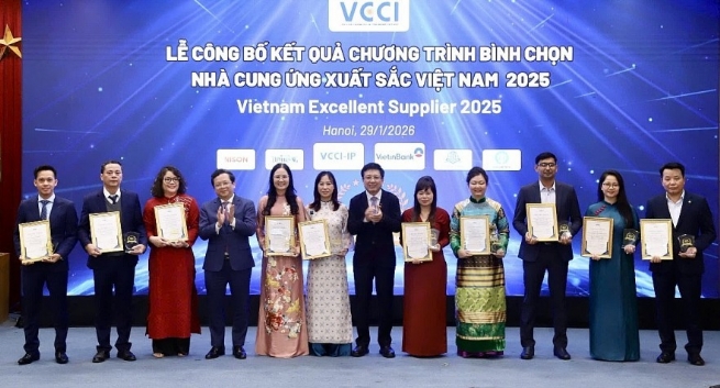 Lễ công bố kết quả Chương trình bình chọn Nhà cung ứng xuất sắc Việt Nam năm 2025 được tổ chức tại Liên đoàn Thương mại và Công nghiệp Việt Nam (VCCI) ngày 29/01, vinh danh 27 doanh nghiệp tiêu biểu.