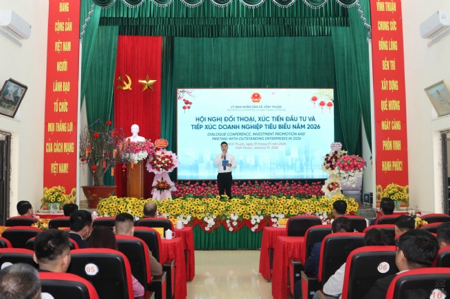 Ngày 31/01, Ủy ban nhân dân xã Vĩnh Thuận tổ chức Hội nghị đối thoại, xúc tiến đầu tư và tiếp xúc doanh nghiệp tiêu biểu nhân dịp Xuân Bính Ngọ năm 2026. Dự hội nghị có các đồng chí lãnh đạo Đảng ủy - HĐND - UBND xã cùng đại diện các doanh nghiệp, doanh nhân trong và ngoài địa phương.