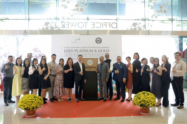 Lễ trao chứng nhận LEED được tổ chức tại Saigon Centre với sự góp mặt của Ông Gopalakrishnan, Giám đốc Điều hành Hội đồng Công trình Xanh Hoa Kỳ, khu vực Nam Á và Trung Đông, Ông Santanu Duttagupta, Giám đốc Phát triển Thị trường Hội đồng Công trình Xanh Hoa Kỳ tại Đông Ấn Độ, Bangladesh và Việt Nam; Ông Đỗ Hữu Nhật Quang, Giám đốc kinh doanh GreenViet – đơn vị tư vấn LEED cho dự án Saigon Centre; cùng ông Lim Kay Siong, Trưởng bộ phận Quản lý Tài sản, Khối Bất động sản, Keppel Việt Nam, kiêm Tổng Giám đốc tòa nhà Saigon Centre và Bà Sharon Ong, Trưởng Bộ phận Quản Lý và Điều Hành khối TTTM Saigon Centre.