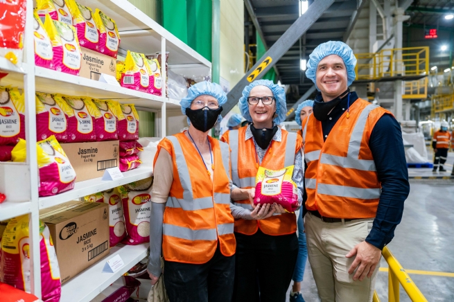 Đại sứ Australia bà Gillian Bird và Tổng Lãnh sự Australia bà Sarah Hooper cùng Giám đốc điều hành SunRice, ông Paul Serra, tham quan nhà máy Lấp Vò.