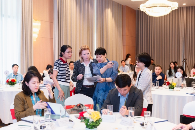 Chia sẻ tại Hội nghị, Bà Mette Møglestue, Phó Đại sứ Na Uy tại Việt Nam: Từ kinh nghiệm của Na Uy, tôi muốn nhấn mạnh tầm quan trọng của đối thoại liên ngành và liên tổ chức. Khóa đào tạo hôm nay đã quy tụ đúng hệ sinh thái cần thiết để tạo nên những bước tiến thực chất – bao gồm các cơ quan nhà nước, đội ngũ chuyên gia, các hiệp hội doanh nghiệp và cộng đồng doanh nghiệp cùng học hỏi và chia sẻ lẫn nhau. Chính sự hợp tác chặt chẽ này là yếu tố then chốt để mở rộng quá trình chuyển đổi số và chuyển đổi xanh một cách hiệu quả, đồng thời đảm bảo phù hợp với điều kiện thực tiễn của địa phương.