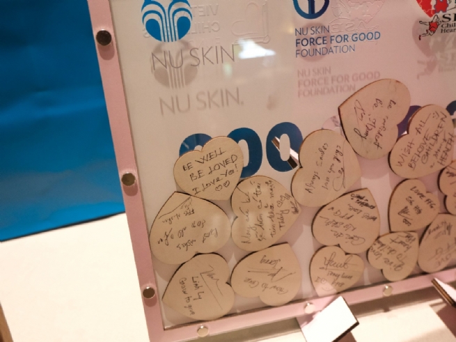 Đại diện Nu Skin Việt Nam ký tên, gửi lời yêu thương đến các bệnh nhi mắc bệnh tim bẩm sinh. (Ảnh: Nu Skin Việt Nam)