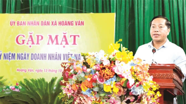 Ông Phạm Văn Nghị, Chủ tịch UBND xã Hoàng Vân tại Lễ gặp mặt doanh nhân trên địa bàn xã