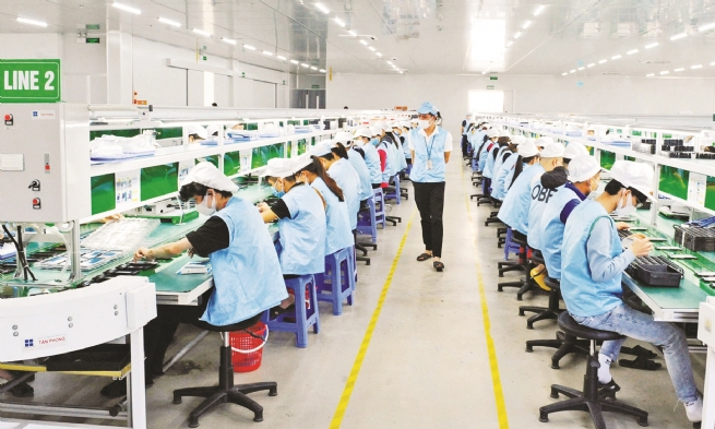 Sản xuất điện tử tại Công ty Sintech không chỉ đóng góp vào giá trị công nghiệp của xã mà còn tạo việc làm ổn định, nâng cao tay nghề cho lao động địa phương