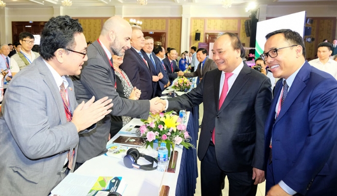 Thủ tướng Nguyễn Xuân Phúc và các đại biểu tại Hội nghị xúc tiến đầu tư vào tỉnh Vĩnh Long năm 2018