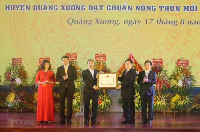 Mới đây, UBND tỉnh Thanh Hoá tổ chức lễ công bố và đón Bằng công nhận huyện Quảng Xương đạt chuẩn nông thôn mới (NTM) năm 2018. Ủy viên Bộ Chính trị, Phó Thủ tướng Chính phủ Vương Đình Huệ dự lễ trao bằng. Thủ tướng Chính phủ Nguyễn Xuân Phúc và một số lãnh đạo, nguyên lãnh đạo Đảng, Nhà nước gửi lẵng hoa chúc mừng.