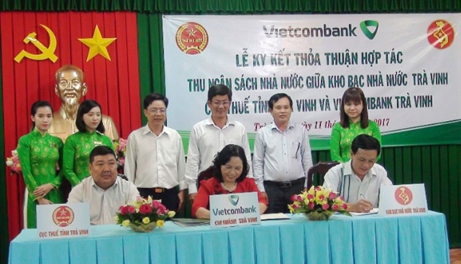 Song song đó, Vietcombank Trà Vinh còn tăng cường liên kết với nhiều đối tác để triển khai các chương trình khuyến mại, ưu đãi cho khách hàng thanh toán thẻ, thanh toán trực tuyến nhằm đưa hình thức thanh toán không tiền mặt tiếp cận hơn với người dân. Năm 2017, Vietcombank Trà Vinh và Trường Đại học Trà Vinh cùng hợp tác triển khai dịch vụ thanh toán học phí qua máy chấp nhận thẻ (POS) tại Trường Đại học Trà Vinh. Doanh số thanh toán học phí của trường qua máy POS Vietcombank mỗi năm đạt khoảng từ 25 đến 30 tỷ đồng, góp phần quan trọng hỗ trợ nhà Trường giảm thiểu chi phí kiểm điếm, lưu thông tiền mặt, đồng thời giúp xây dựng thói quen thanh toán phi tiền mặt đối với giới trẻ. Chi nhánh còn chủ động liên kết và kết nối dữ liệu với các đơn vị dịch vụ công như: Điện lực, Cấp thoát nước, Kho bạc Nhà nước, Thuế, BHXH… qua đó thu hút ngày càng nhiều khách hàng cá nhân cũng như doanh nghiệp tham gia giao dịch thông qua các kênh thanh toán của Vietcombank với doanh số giao dịch hàng năm đạt hơn 1.000 tỷ đồng.