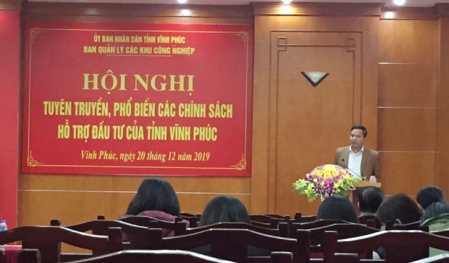 Mới đây, tại Trung tâm Hội nghị tỉnh Vĩnh Phúc, Ban Quản lý các khu công nghiệp tiếp tục tổ chức “Hội nghị tuyên truyền phổ biến các chính sách hỗ trợ đầu tư của tỉnh Vĩnh Phúc”. Tới dự có lãnh đạo Ban Quản lý các KCN, Liên minh HTX Vĩnh Phúc và đại diện các doanh nghiệp đang hoạt động tại các KCN Vĩnh Phúc.