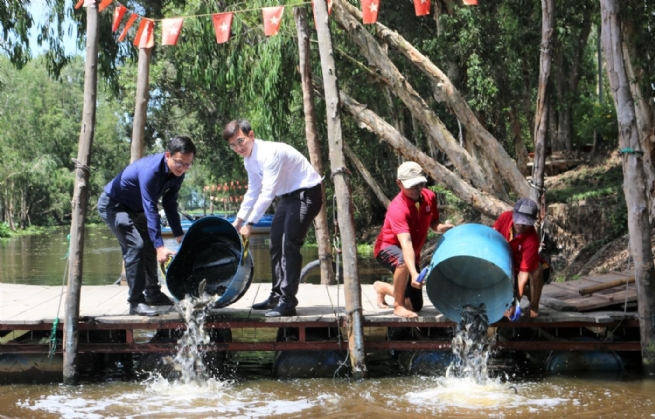 Hơn 20 tấn cá đồng các loại đã được nhà đầu tư thả về rừng tràm Trà Sư