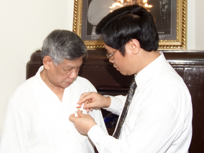 Ngày 12/7/2004, Chủ tịch VCCI Vũ Tiến Lộc trao tặng Kỷ niệm chương vì sự phát triển doanh nghiệp cho Nguyên Tổng bí thư Lê Khả Phiêu (Ảnh Quốc Tuấn).