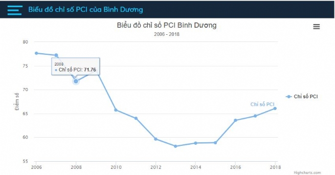 Theo công bố của VCCI, so với năm 2018, chỉ số năng lực cạnh tranh cấp tỉnh PCI 2019 của Bình Dương tuy về điểm số có tăng 1,29 điểm nhưng thứ hạng giảm 7 bậc cho thấy sự nỗ lực vượt bậc và nhanh chóng của các tỉnh, thành ở nhóm có chất lượng điều hành khá.