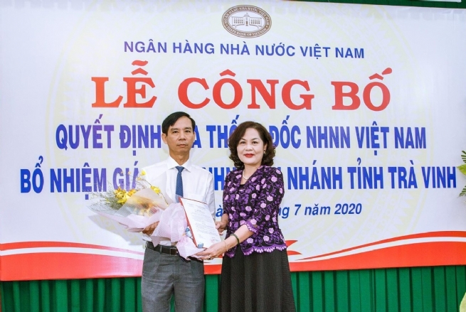 Phó Thống đốc NHNN Nguyễn Thị Hồng trao Quyết định bổ nhiệm cho ông Lê Văn Hai - Giám đốc NHNN Chi Nhánh tỉnh Trà Vinh
