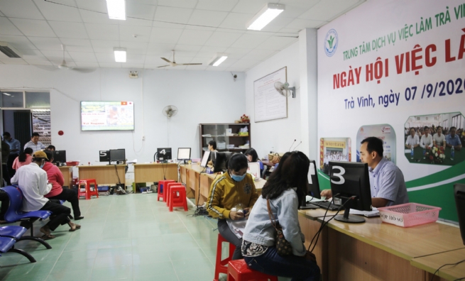 Thời gian qua, Trung tâm Dịch vụ việc làm (DVVL) tỉnh Trà Vinh đã thực hiện nhiều giải pháp hỗ trợ người lao động trên địa bàn tỉnh bị nghỉ việc do dịch Covid-19, như: kịp thời chi trả bảo hiểm thất nghiệp (BHTN); tư vấn, giới thiệu việc làm mới... Đồng thời, đẩy mạnh hỗ trợ doanh nghiệp (DN) tuyển dụng việc làm, qua đó, tiếp tục phát huy tốt vai trò cầu nối giữa DN với người lao động.