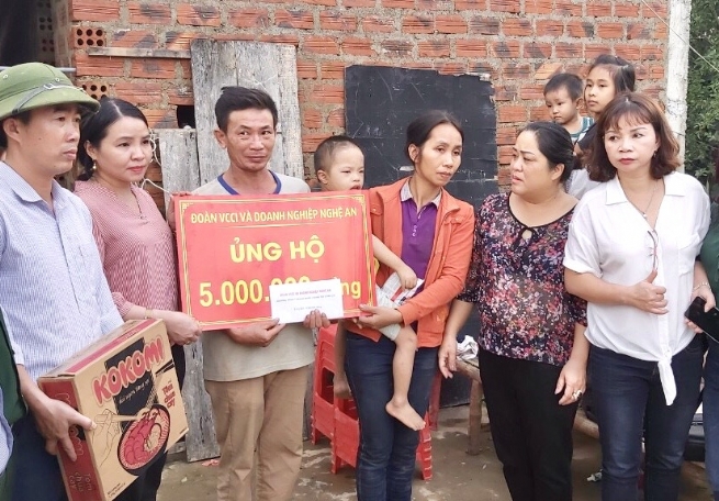 Hưởng ứng lời kêu gọi của chính quyền các cấp và với tinh thần tương thân tương ái, “lá lành đùm lá rách”, Phòng Thương mại và Công nghiệp Việt Nam tại Nghệ An (Chi nhánh VCCI Nghệ An) đã phát động Chương trình “Doanh nhân chung tay vùng lũ”. Chương trình đã được nhiều Doanh nghiệp, Doanh nhân trên địa bàn hưởng ứng nhiệt tình, đóng góp tiền và hiện vật ủng hộ đồng bào miền Trung góp phần giúp Nhân dân vùng lũ vượt qua khó khăn, ổn định cuộc sống.