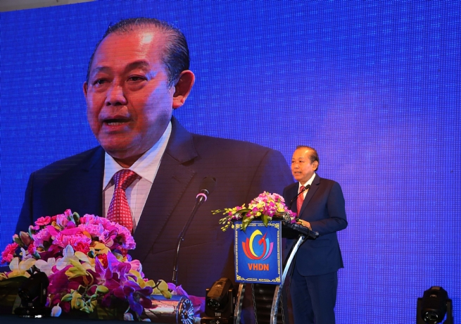 “Tôi đồng ý với nhận định mà nhiều diễn giả, đại diện cho các doanh nghiệp phát biểu, muốn doanh nghiệp phát triển bền vững, cùng với việc doanh nghiệp phải xác định rõ chiến lược, mục tiêu kinh doanh; xây dựng hệ thống quản trị doanh nghiệp hiện đại, hiệu quả; xây dựng thương hiệu; nâng cao năng lực cạnh tranh, năng suất lao động và không ngừng đổi mới, sáng tạo thì doanh nghiệp cần phải xây dựng, phát triển văn hóa doanh nghiệp, xác định đây là vấn đề cốt lõi, là nền tảng cho doanh nghiệp phát triển”, Phó Thủ tướng Thường trực Chính phủ bày tỏ.