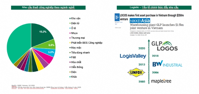 Sự phát triển mạnh của thương mại điện tử và công ty logistics kể từ COVID-19 bùng nổ đã tạo nên nhu cầu lớn về không gian lưu trữ và mạng lưới phân phối. Do đó, nhu cầu tìm quỹ đất để phát triển các cơ sở logistics đang chiếm lĩnh thị trường. Kể từ cuối năm 2018, thị trường đã đón nhận nhiều nhà đầu tư ngoại trong phát triển kho logistics như BW Industrial, Logis Valley, LOGOS và GLP gia nhập thị trường. Mapletree – một trong những nhà đầu tư tiên phong trong xây dựng kho cho thuê từ Singapore – cũng đang ráo riết mở rộng quỹ đất. Kể từ năm 2021, thị trường dự đoán sẽ đón nhận khoảng 800.000 m2 nguồn cung nhà kho cho thuê,tập trung chủ yếu tại các khu vực Bắc Ninh, Hải Dương, Hải Phòng và Quảng Ninh.