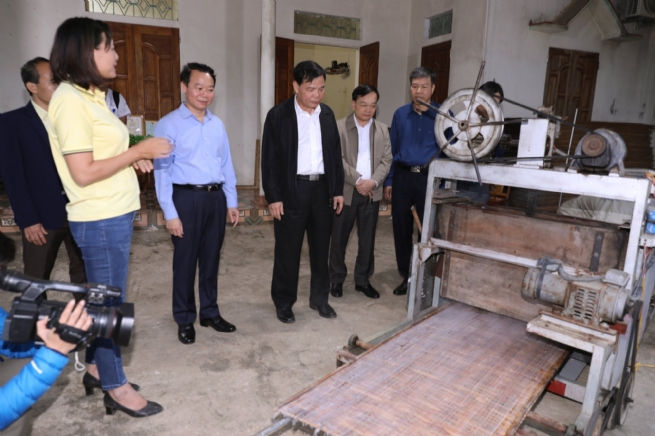 Ảnh:Ủy viên Trung ương Đảng, Bộ trưởng Bộ Nông nghiệp và Phát triển nông thôn Nguyễn Xuân Cường cùng lãnh đạo tỉnh Yên Bái tham quan mô hình HTX miến đao giới phiên