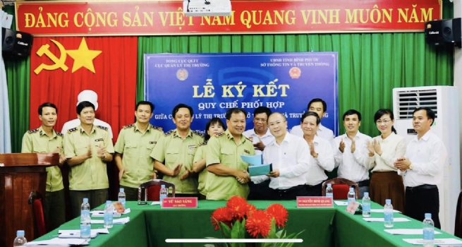 Cục cũng duy trì và cập nhật thường xuyên các hoạt động của lực lượng QLTT Bình Phước trên website của đơn vị; đăng tải thường xuyên các thông tin liên quan đến chính sách pháp luật mới, các hoạt động sinh hoạt thường kỳ của Cục và nhất là kịp thời đăng tải các kết quả kiểm tra, bắt giữ, xử lý các vụ việc vi phạm do các Đội QLTT trực thuộc thực hiện hoặc phối hợp với các ngành chức năng thực hiện. Nhờ đó, phản ánh sinh động thực tế các kết quả trong quá trình thực hiện công vụ của lực lượng QLTT tỉnh.