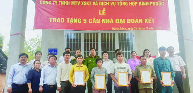 Riêng trong năm 2020, Công ty đã bố trí hơn 20 tỷ đồng cho các hoạt động như: tài trợ xây tặng hơn 70 căn nhà tình thương; ủng hộ 2,5 tỷ đồng hỗ trợ đồng bào các tỉnh miền Trung bị thiên tai bão lũ; ủng hộ Quỹ Khuyến học tỉnh 200 triệu đồng; hỗ trợ hơn 2,5 tỷ đồng cho người bán vé số lưu động bị ảnh hưởng bởi dịch bệnh Covid-19; tặng quà cho người nghèo nhân dịp lễ, tết với số tiền hơn 7,5 tỷ đồng và hưởng ứng các chương trình an sinh xã hội do các tổ chức trong và ngoài tỉnh phát động số tiền hơn 2,5 tỷ đồng…
