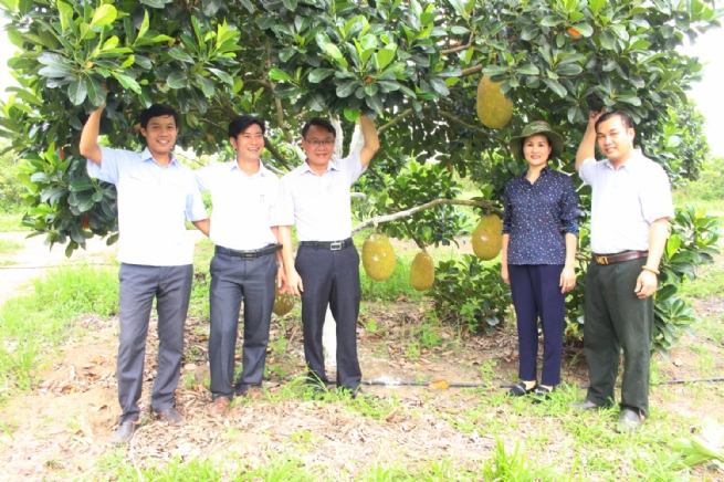 Lãnh đạo huyện tham quan mô hình sản xuất mít ruột đỏ của HTX
