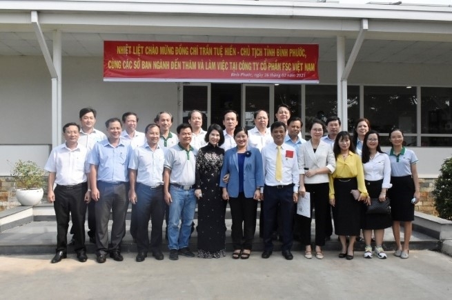 Ngày 26/02/2021, bà Trần Tuệ Hiền, Chủ tịch UBND tỉnh Bình Phước, cùng các lãnh đạo đại diện các sở, ban, ngành của tỉnh và địa phương đã đến tham quan dây chuyền sản xuất ván MDF tại Khu công nghiệp Nam Đồng Phú. Báo cáo với Chủ tịch UBND tỉnh Bình Phước và các thành viên trong đoàn, đại diện lãnh đạo Công ty FSC Việt Nam cho biết: Bám sát tinh thần chỉ đạo của Thủ tướng Chính phủ và của tỉnh Bình Phước, FSC Việt Nam đã thực hiện phát triển đi đôi với phòng, chống dịch Covid-19 hiệu quả. Tiếp tục phát huy tinh thần đoàn kết, chủ động, sáng tạo, nỗ lực vượt qua khó khăn, trong đó nhiều giải pháp đồng bộ được triển khai đã góp phần ổn định tư tưởng, tinh thần người lao động yên tâm công tác và quyết tâm cao cùng doanh nghiệp về đích kế hoạch sản xuất, kinh doanh.