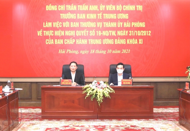 Phát biểu chỉ đạo tại buổi làm việc, ông Trần Tuấn Anh nêu rõ: Hải Phòng là một trong những địa phương đã triển khai thực hiện Nghị quyết 19-NQ/TW có hiệu quả, cách làm đổi mới, đạt được nhiều kết quả tích cực.