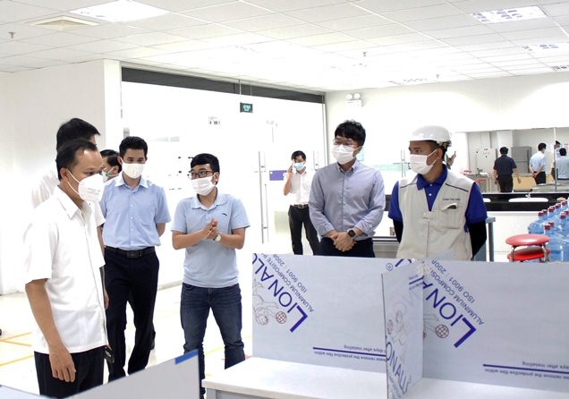 Phó Chủ tịch UBND tỉnh Bắc Giang Mai Sơn kiểm tra tình hình sản xuất tại doanh nghiệp. Ảnh VGP/Thiện Tâm