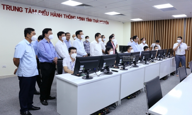 Tỉnh Thái Nguyên đã đưa vào khai thác, vận hành Trung tâm điều hành thông minh (IOC) ngày 15/01/2021, đặt tại UBND tỉnh. IOC đã bố trí 6 - 8 cán bộ với 10 máy tính, 6 điện thoại tổng đài làm nhiệm vụ quản lý, hướng dẫn, giải đáp, hỗ trợ trực tiếp công dân để bảo đảm thông tin thông suốt 24/24 giờ trong ngày. IOC được coi là “bộ não số” của tỉnh với khả năng tích hợp dữ liệu và các hệ thống sẵn có cùng các phần mềm điều khiển, cho phép kết nối thông tin, trích xuất dữ liệu; tiếp nhận thông tin phản ánh của người dân, doanh nghiệp, phục vụ công tác nghiên cứu, chỉ đạo, điều hành của các cơ quan hành chính nhà nước, các cấp chính quyền… một cách công khai, minh bạch. Đặc biệt, nhờ nền tảng quản lý camera tập trung, IOC đã hỗ trợ hiệu quả cho công tác phòng, chống dịch Covid-19 của tỉnh Thái Nguyên.