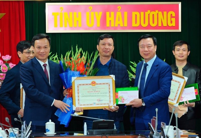Lãnh đạo tỉnh Hải Dương trao bằng khen và quà cho doanh nghiệp tiêu biểu có đóng góp lớn vào ngân sách năm 2021