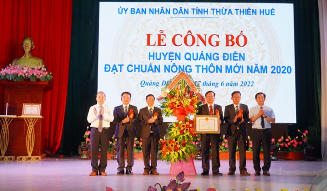 Đến nay, huyện đã có 10/10 xã đạt chuẩn NTM, huyện Quảng Điền đã được Thủ tướng Chính phủ công nhận huyện đạt chuẩn NTM năm 2020 tại Quyết định ngày 9/5/2022. Đặc biệt, trong 10 xã đạt chuẩn NTM có 7 xã đặc biệt khó khăn vùng bãi ngang ven biển, tỷ lệ hài lòng của người dân về kết quả xây dựng NTM của huyện đạt rất cao (99,88%),...