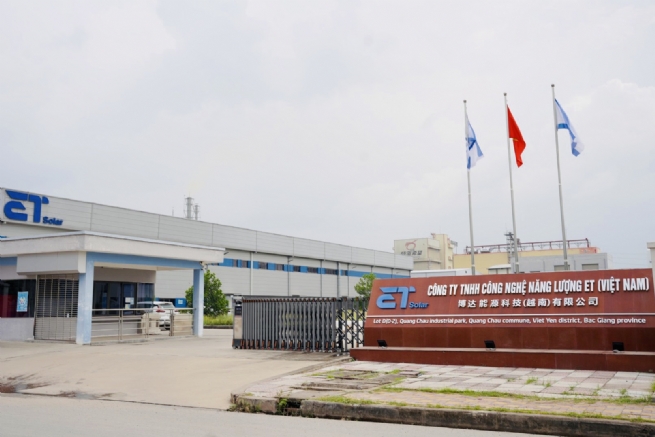 Tại Việt Nam, từ năm 2019, ET SOLAR đã thành lập Công ty TNHH Công nghệ năng lượng ET Việt Nam và đầu tư Nhà máy có quy mô 02ha tại KCN Quang Châu, huyện Việt Yên, tỉnh Bắc Giang chuyên sản xuất tấm silicon, pin và mô-đun. Ông Liu, Jingqi - Tổng Giám đốc Công ty TNHH Công nghệ năng lượng ET Việt Nam cho biết: Bắc Giang là địa phương có vị trí địa lý thuận lợi, chính quyền địa phương luôn quan tâm đầu tư phát triển cơ sở hạ tầng nhất là hệ thống giao thông, nguồn lao động dồi dào có thể đáp ứng một phần về yêu cầu tay nghề kỹ thuật cho ngành sản xuất quang điện; theo đó các chính sách thu hút đầu tư ổn định, nguồn cung ứng cùng ngành hoàn thiện là lựa chọn hàng đầu để các công ty sản xuất quang điện tham gia đầu tư tại tỉnh.