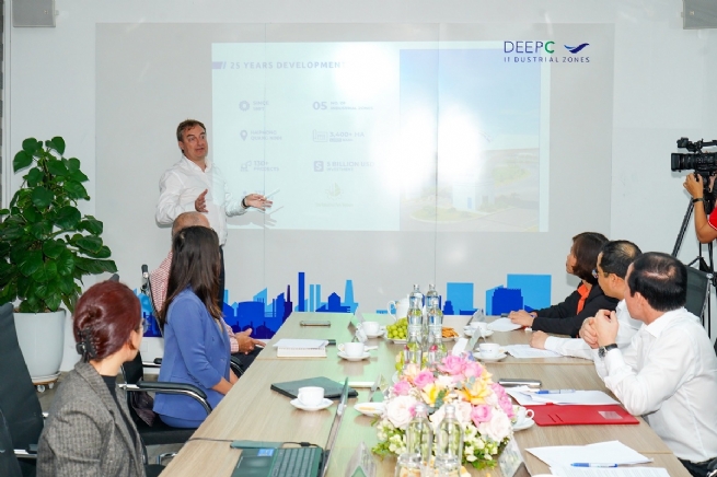 Tổ hợp KCN DEEP C là đơn vị kinh doanh, quản lý hạ tầng KCN theo tiêu chuẩn châu Âu. Ngoài việc chú trọng đầu tư phát triển hạ tầng đồng bộ và chất lượng cao, DEEP C là một trong những đơn vị tiên phong sử dụng năng lượng sạch, năng lượng tái tạo như điện gió, điện mặt trời trong quản lý và vận hành khu công nghiệp và triển khai nhiều giải pháp để thúc đẩy phát triển bền vững.