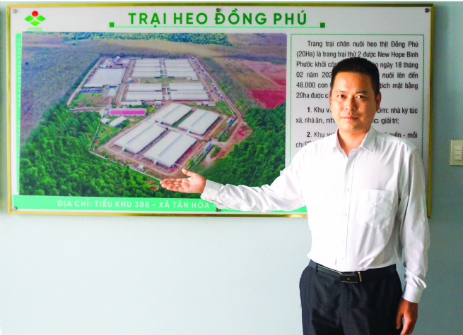 Là một trong những công ty của Tập đoàn New Hope tại Việt Nam, Công ty TNHH Chăn nuôi New Hope Bình Phước đã phát huy thế mạnh trong sản xuất, kinh doanh, liên tục mở rộng hoạt động, nâng cao chất lượng và phát triển thương hiệu. Đặc biệt, với dự án trang trại chăn nuôi kết hợp Nhà máy sản xuất cám tại huyện Hớn Quản, với số vốn đầu tư xây dựng lên đến 135 triệu USD trên diện tích 75ha; được trang bị dây chuyền sản xuất tiên tiến có công suất 300.000 heo giống/năm và là trang trại lớn nhất khu vực Đông Nam Á, qua đó đưa New Hope trở thành nhà đầu tư nước ngoài chuyên sản xuất thức ăn chăn nuôi và trang trại chăn nuôi heo có quy mô hàng đầu Việt Nam.