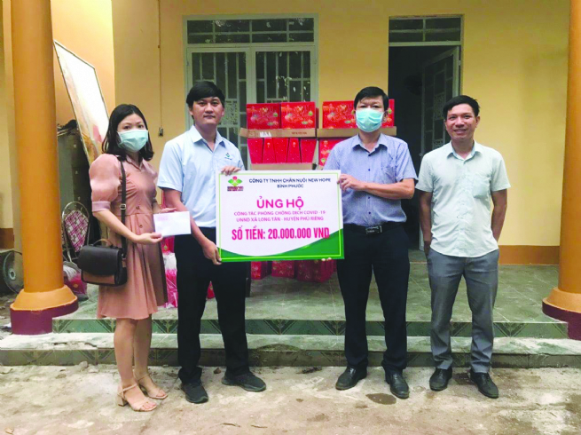 Không chỉ chú trọng hoạt động sản xuất kinh doanh, New Hope Bình Phước còn quan tâm đến các hoạt động an sinh xã hội. Năm 2021, khi dịch bệnh Covid-19 diễn biến phức tạp, Công ty đã ủng hộ chính quyền địa phương 01 xe cứu thương nhằm kịp thời phục vụ công tác phòng chống dịch, đóng góp hỗ trợ vào ngân sách địa phương để hỗ trợ làm đường, kéo điện sinh hoạt phục vụ nhân dân. Ngoài ra, Công ty cũng thường xuyên ủng hộ tặng quà, tặng heo giống làm kế sinh nhai cho những gia đình khó khăn,...
