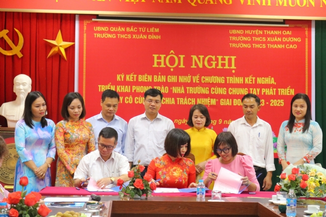 Thực hiện Kế hoạch số 4340/KH-SGDĐT ngày 12/12/2022 của Sở GD&ĐT Hà Nội về việc tổ chức phong trào “Nhà trường cùng chung tay phát triển - Thầy cô cùng sẻ chia trách nhiệm” giai đoạn 2022-2025; Kế hoạch số 12/KH-LP ngày 13/3/2023 của Phòng GD&ĐT quận Bắc Từ Liêm và Phòng GD&ĐT huyện Thanh Oai về việc tổ chức phong trào “Nhà trường cùng chung tay phát triển - Thầy cô cùng sẻ chia trách nhiệm” giai đoạn 2022-2025.