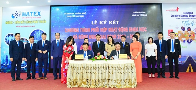 TS. Trần Quang Tuấn - Giám đốc Sở KH&CN và PGS.TS Phạm Xuân Dương - Hiệu trưởng Trường Đại học Hàng hải Việt Nam ký kết Chương trình phối hợp