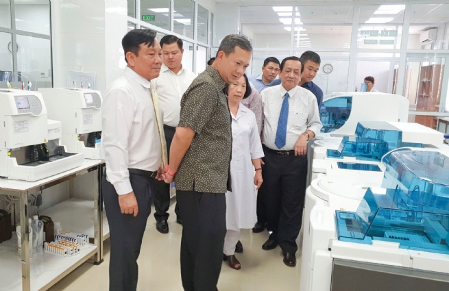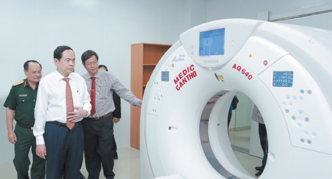 Ông Trần Thanh Mẫn, Ủy viên Trung ương Đảng, Chủ tịch Ủy ban Trung ương Mặt trận Tổ quốc Việt Nam (nay là Ủy viên Bộ Chính trị, Phó Chủ tịch Thường trực Quốc hội) dự Lễ khánh thành và tham quan Máy chụp cắt lớp CT 640 lát cắt tại Bệnh viện vào tháng 12/2017