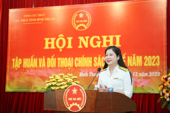 Ngoài ra Cục Thuế Bình Thuận còn phối hợp với Hội tư vấn thuế Việt Nam và các nhà cung cấp dịch vụ hóa đơn điện tử tổ chức nhiều cuộc Hội nghị, tập huấn qua hình thức trực tuyến và trực tiếp hướng dẫn cụ thể, chi tiết đến các tổ chức, doanh nghiệp các bước chuẩn bị cơ sở vật chất, hạ tầng kỹ thuật và các thao tác lập, sử dụng hóa đơn điện tử; mọi vướng mắc, khó khăn của NNT đều được giải đáp và tháo gỡ ngay. "Gần đây nhất ngày 30/11/2023, Cục Thuế tỉnh Bình Thuận cũng đã ban hành Công văn số 8438/CTBTH-KTNB đẩy mạnh triển khai Công điện 1123/CĐ-TTg ngày 18/11/2023 của Thủ tướng Chính phủ, Chỉ thị 04/CT-BTH ngày 24/11/2023 của Bộ Tài chính, Công văn số 6068/VP-TH ngày 28/11/2023 của Văn phòng UBND tỉnh Bình Thuận về tăng cường quản lý, sử dụng hóa đơn điện tử, góp phần đẩy mạnh công tác chuyển đổi số trong ngành Thuế" – Bà Trần Thị Diệu Hoàng cho hay