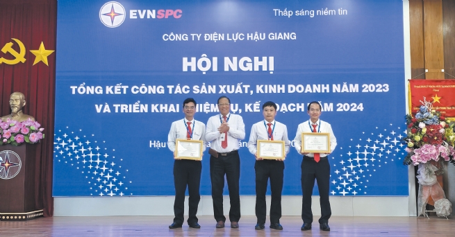 Lãnh đạo PC Hậu Giang trao bằng khen cho các cá nhân xuất sắc tại Hội nghị tổng kết công tác năm 2023 và triển khai nhiệm vụ năm 2024