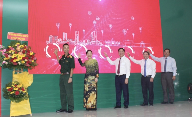 Lãnh đạo tỉnh và thành phố nhấn nút khánh thành Trung tâm IOC TP. Phan Rang - Tháp Chàm.