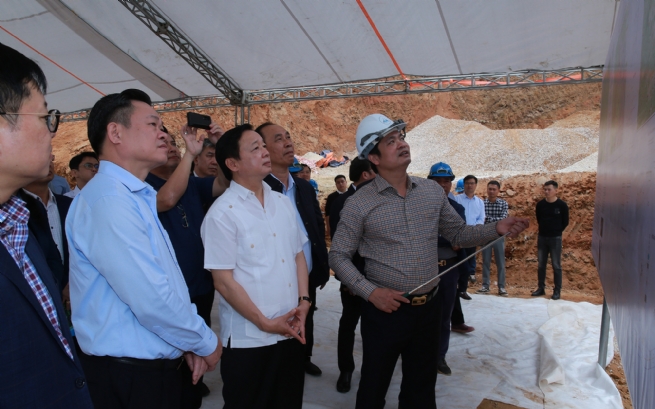 Phó Thủ tướng Trần Hồng Hà nghe báo cáo về tiến độ thi công tuyến đường thành phố Bắc Kạn - hồ Ba Bể, kết nối sang Na Hang, tỉnh Tuyên Quang