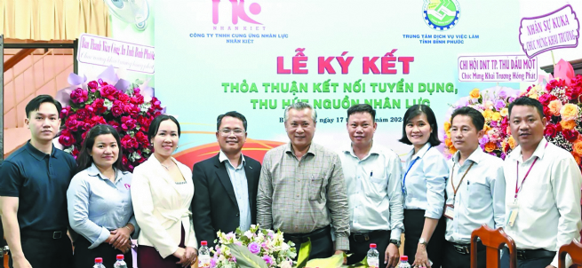 Trung tâm Dịch vụ việc làm tỉnh Bình Phước ký kết thỏa thuận kết nối tuyển dụng, thu hút nguồn nhân lực với Công ty TNHH cung ứng nhân lực Nhân Kiệt