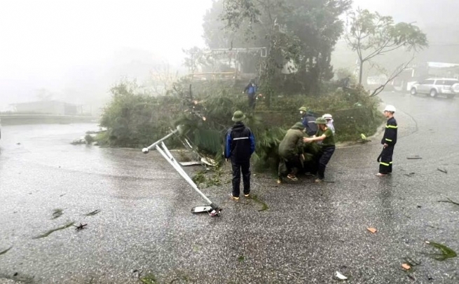 Ngay trong sáng ngày 08/9, UBND huyện Tam Đảo đã nhanh chóng huy động lực lượng công an, quân sự, dân quân tự vệ và kiểm lâm Vườn Quốc gia Tam Đảo cùng tham gia khắc phục hậu quả bão. Các lực lượng đã tích cực dọn dẹp cây cối bị đổ, vệ sinh lòng đường và giải phóng giao thông nhanh chóng để tuyến đường từ km13 đến trung tâm thị trấn có thể lưu thông trở lại.