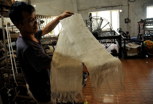 Khăn dệt từ sợi tơ sen Phùng Xá