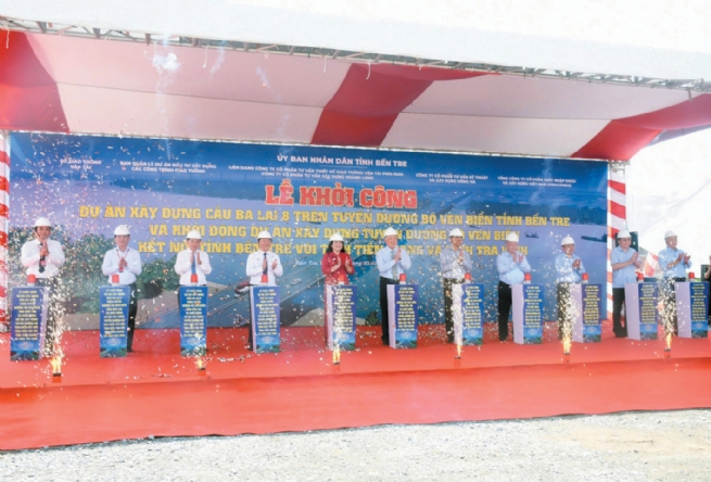 Ngày 02/10/2024, tại xã Thạnh Phước, huyện Bình Đại, UBND tỉnh Bến Tre đã tổ chức khởi công dự án cầu Ba Lai 8, hợp phần đầu tiên trên tuyến đường bộ ven biển miền Tây - kết nối các tỉnh Tiền Giang, Bến Tre và Trà Vinh. Tham dự Lễ khởi công có Ủy viên Bộ Chính trị, Bí Thư Trung ương Đảng, Phó Thủ tướng Thường trực Chính phủ Nguyễn Hòa Bình cùng lãnh đạo các bộ, ngành Trung ương cùng các tỉnh Bến Tre, Tiền Giang và Trà Vinh. Cầu Ba Lai 8 thiết kế dài 527,6m, khổ cầu rộng 22,5m, mặt đường gồm 04 làn xe ô tô và 02 làn xe hỗn hợp; vận tốc thiết kế 80km/giờ,… với tổng mức đầu tư 2.255 tỷ đồng.