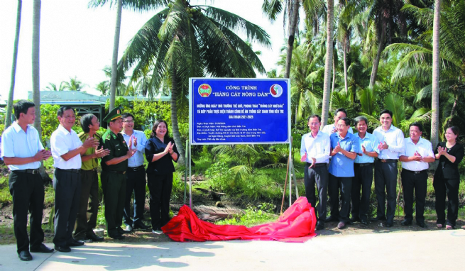 Lãnh đạo Tỉnh ủy, UBND tỉnh Bến Tre và các sở, ngành, địa phương gắn bảng công trình Hàng cây nông dân