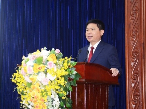 ÔngTrương Quốc Huy, Phó Bí thư Tỉnh ủy, Chủ tịch UBND tỉnh, Trưởng Đoàn đại biểu Quốc hội tỉnh phát biểu tại hội nghị.