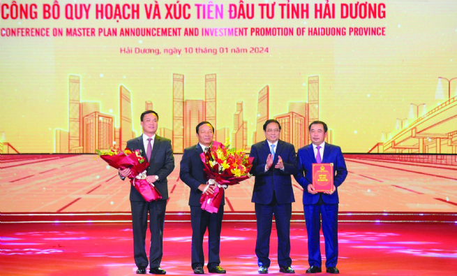 Thủ tướng Chính phủ Phạm Minh Chính trao quyết định phê duyệt Quy hoạch tỉnh Hải Dương thời kỳ 2021 - 2030, tầm nhìn đến năm 2050 cho lãnh đạo tỉnh Hải Dương
