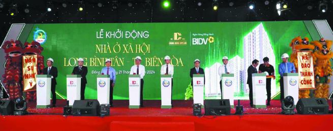 Các đại biểu bấm nút khởi động dự án nhà ở xã hội Long Bình Tân, TP.Biên Hòa