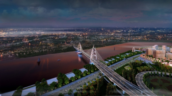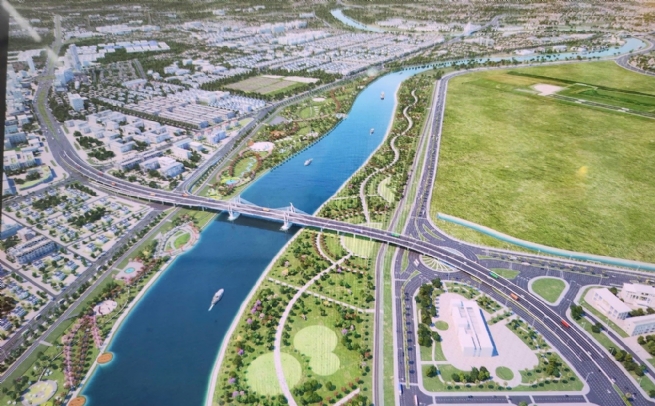 Phối cảnh tổng thể toàn cảnh Dự án cầu Nguyễn Trãi và vùng đô thị phụ cận